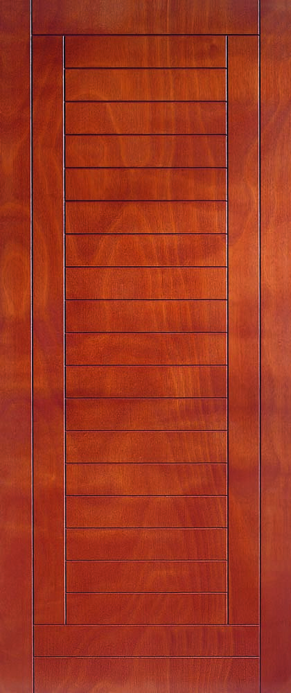 Ici présenté en Okoumé teinté merisier