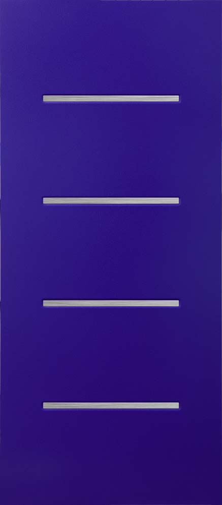 Panneau en aluminium mouluré laqué coloris RAL sur panneau bois avec inserts inox ou aluminium anodisé rouge